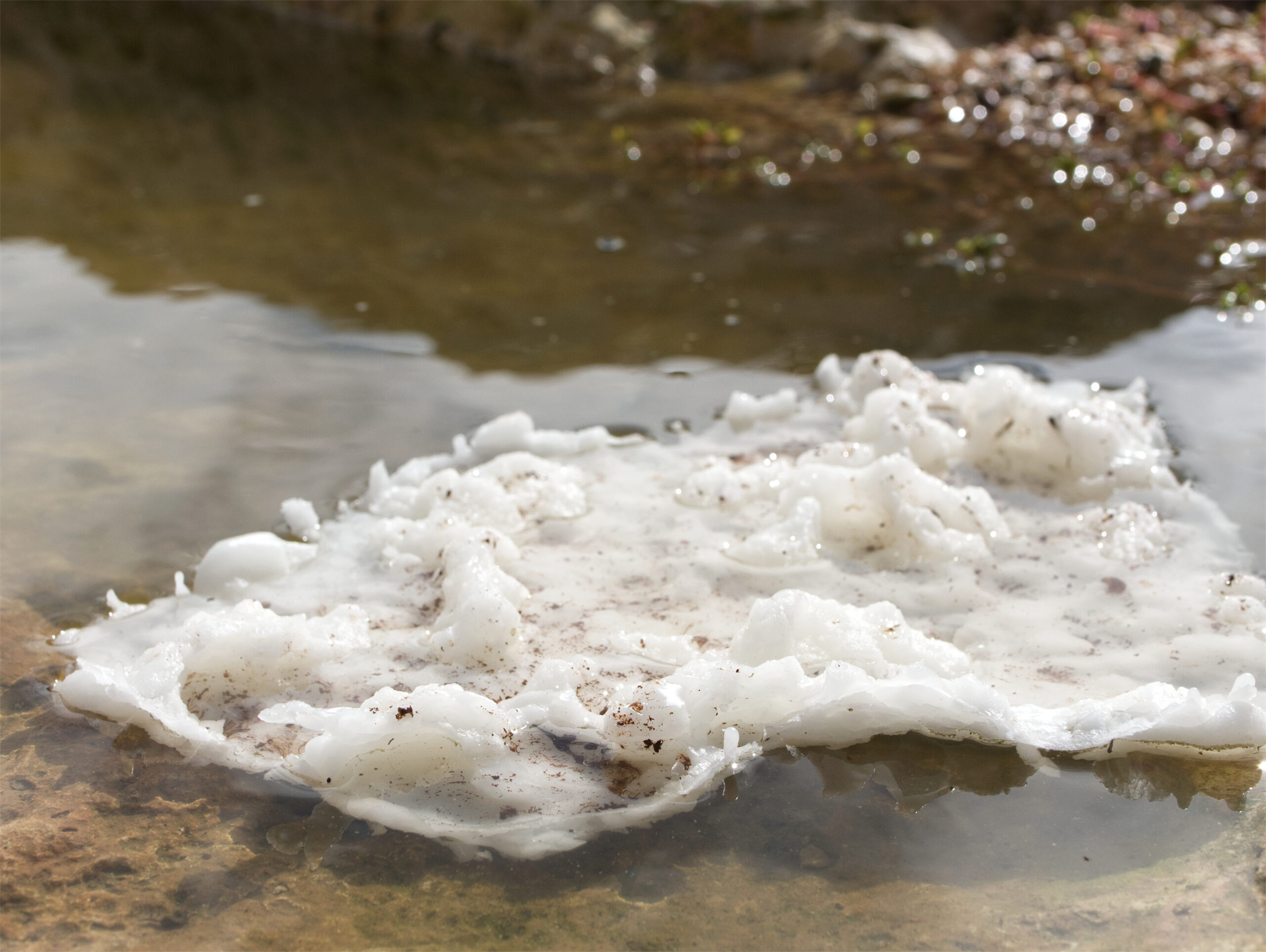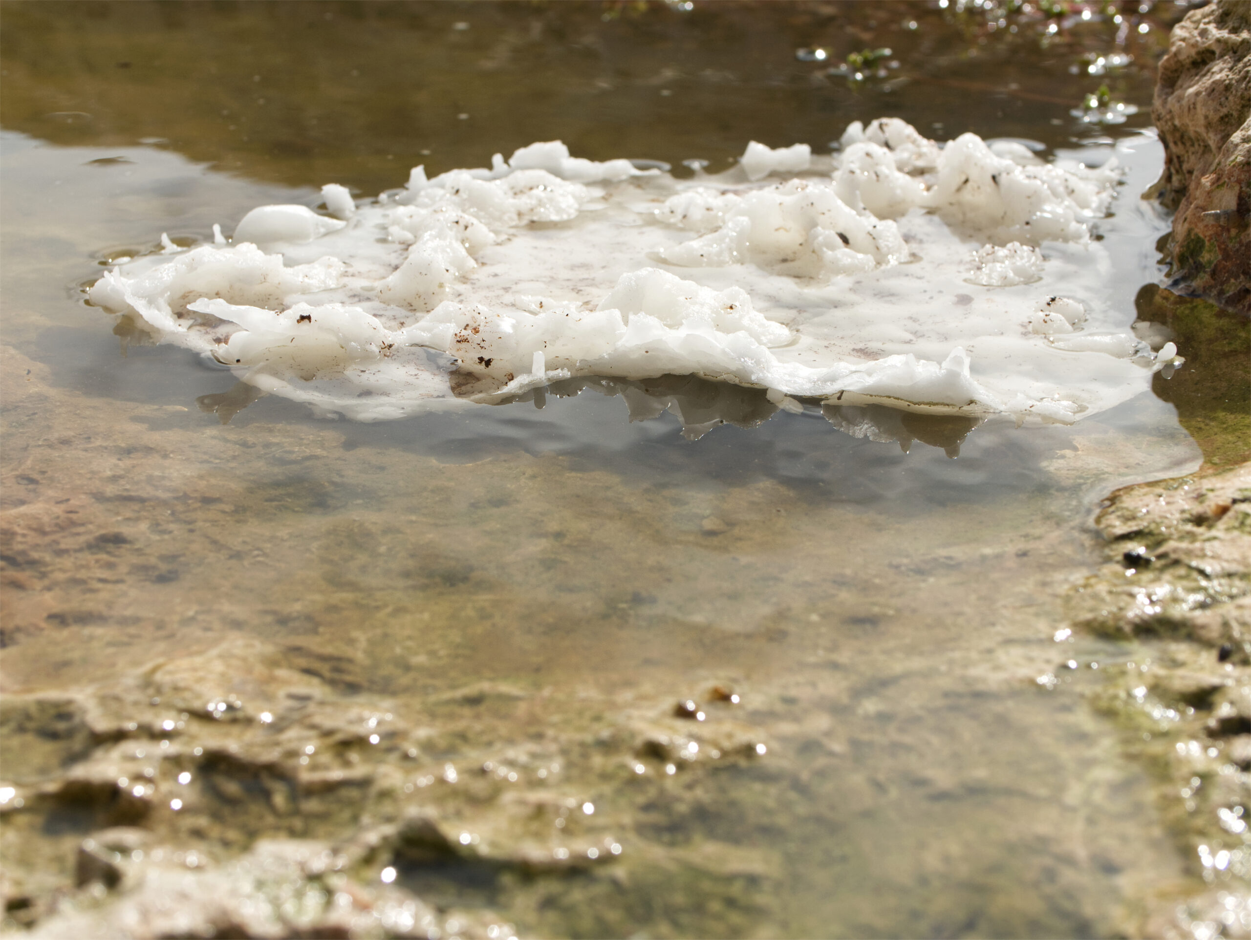 Photographs of wax replicas of stone, swimming in an early autumn puddle. Made on Menorca during a residency stay.